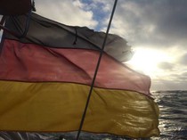 Unsere etwas ramponierte Flagge im Wind