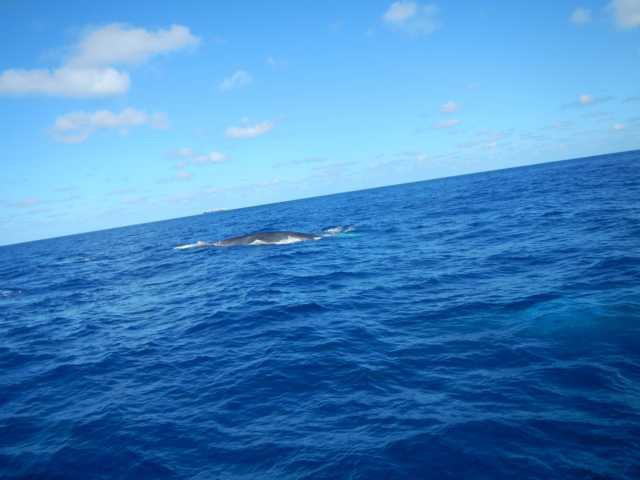 S: Ausserdem bekamen Klaus und Ean waehrend ihrer Schicht zwei Wale zu sehen, die direkt neben dem Boot auftauchten. Der eine Wal dachte wohl er waere ein Delphin und schwamm direkt unter dem Bug unseres Schiffs durch, waehrend der andere Wal ca. 30 Meter neben dem Boot herschwamm. So was kriegt man wirklich ganz selten zu sehen.