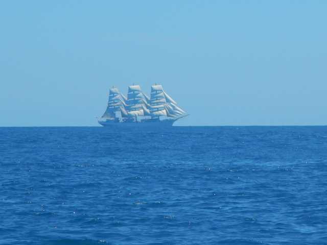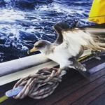 M: Nach einer turbolenten und eher schlaflosen als erholsamen Nacht hiess es fuer mich um 6 aufstehen und Wache halten. Anfangs noch mit der Muedichkeit kaempfend wurde die Wache schnell zu einer recht ereignissreichen. Um die 5 grosse Frachter fuhren unweit unseres Schiffes an uns vorbei. Danach gab es zwei Wale einige Zeit zu beobachten wie sie immer wieder Fontaenen bliesen. Aber das Highlight der Wache ereignete sich am Ende. Ich hatte die Angel ins Wasser gelassen und einige Voegel wurden darauf aufmerksam. Ploetzlich merkte ich etwas seltsames. Ein Vogel flog nahe des Schiffes und hatte etwas hinter sich her fliegen. Es dauerte einen kurzen Moment bis ich zur Angel blickte und merkte dass unsere Schnur nicht ins Wasser hing sonder in die Luft ragte. Der Vogel hatte sich beim Versuch unseren Koeder zu