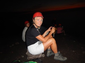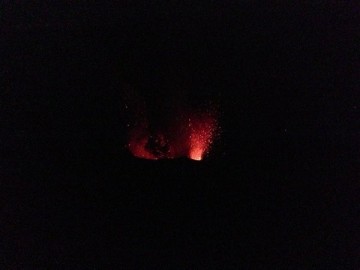 welch ein Bild, Feuer aus dem Vulkan und ein klarer Sternhimmel über uns.