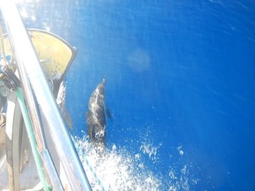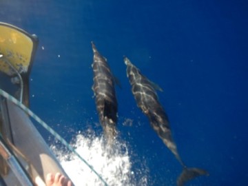 wieder begleiten uns viele Delfine.